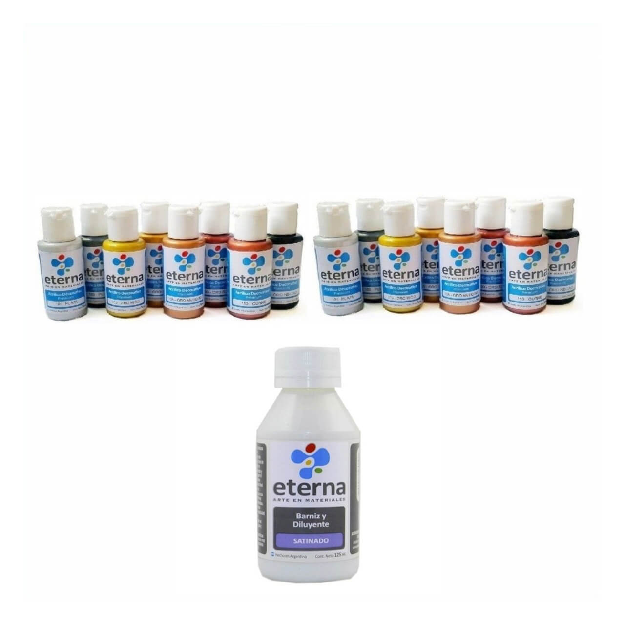 ACRILICOS ETERNA 50 Colores + 1 BARNIZ x 125Cc